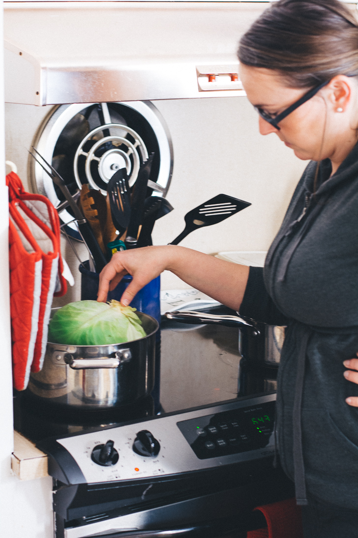 When we went in on this chilly Fall morning they had the fire going in the fireplace and the farmer was there in her dirty overalls putting out some product. I was geeked out on New England at that moment. I searched through the produce to choose something local and seasonal. Right now, it’s a lot of the cruciferous vegetables. Available was brussels sprouts, broccoli, cauliflower and cabbage. Oh cabbage. It’s like the underdog of the vegetable world. It can be stinky and intimidating to cook with. Some may choose to pass on cabbage because of the gas it allegedly causes but we do not fear the gas in this house. 3 out of the 5 of us cannot control it and the other two choose not to! So, I went with the cabbage.